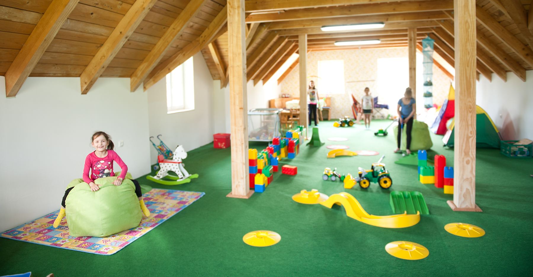 - Indoor Kinderspielstadl 100 m² beheizt mit Reitpferde, Indianerhäuschen, Kinderwerkstatt, Puppenküche, Pool-Billard