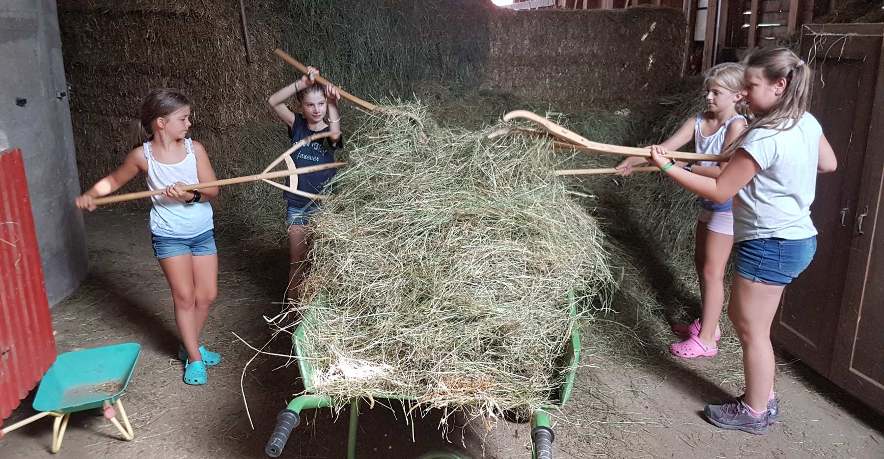- Helfen bei der Heuernte im Sommer